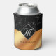 Elegant Black Marble & Copper Foil Monogram Can Cooler