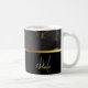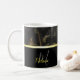 Elevate your daily coffee or tea ritual with this Black Grey Marble Gold Monogram Mug. The chic combination of black and grey marble, accentuated by luxurious gold details, creates a modern and sophisticated design. Personalize it with your monogram to add a touch of individuality. This mug not only enhances your drinkware collection but also provides a comfortable and stylish way to enjoy your favourite beverages. Whether displayed on your kitchen counter, desk, or in your hand, it effortlessly adds a touch of elegance and refinement to any setting. Embrace the beauty of this mug and indulge in both style and functionality.