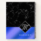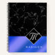 Elegant Black Marble & Royal Blue Foil Monogram Notebook