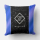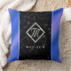 Elegant Black Marble & Royal Blue Foil Monogram Throw Pillow