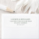 This return address label features a clean, minimalist design with centred text on a white background. The classic serif font adds an elegant touch, while the black and white colour palette creates a timeless look. Perfect for formal occasions, this label offers customizable fields for names and addresses, ensuring a personalized yet sophisticated appearance. Its simple composition emphasizes clarity and refinement, making it ideal for weddings or other special events.