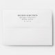This wedding envelope features a minimalist design with a clean, balanced layout on a plain white background. The bold, uppercase serif font highlights the names at the top, while the address is presented in a smaller, lighter serif font below, ensuring clarity and elegance. With ample negative space, the design exudes sophistication and formality, making it perfect for special occasions like weddings. The black text on a white background emphasizes readability and simplicity, creating an understated yet refined aesthetic ideal for formal events.