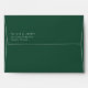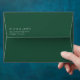 This wedding envelope features a minimalist design with a solid dark green background and crisp white text, creating an elegant and sophisticated look. The layout is simple yet refined, focusing on clean lines and precise spacing to emphasize clarity and formality. The typography includes bold, uppercase letters for the names and a lighter weight for the address, ensuring both are easily readable while maintaining a cohesive style. Perfect for couples seeking a modern and understated aesthetic, this envelope conveys a sense of timeless elegance ideal for formal announcements or invitations.