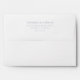 This wedding envelope features a minimalist and modern design with a clean, elegant layout centred on a solid background. The colour palette is simple, utilizing deep black for the background and pure white for the text, ensuring high contrast and readability. The typography employs a classic serif font in medium weight, arranged vertically with ample spacing to enhance legibility and sophistication. Customizable placeholders allow personalization for names, addresses, and locations, making it perfect for formal invitations or communications. The overall mood is one of refined elegance, ideal for celebrating significant life moments like weddings.