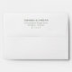 This wedding envelope features a minimalist design with a clean, white background and elegant black serif typography. The layout is vertically oriented, emphasizing simplicity and readability, with ample negative space that enhances its sophisticated look. Customizable text allows for personalization of names and addresses, making it perfect for formal invitations or communications. The absence of additional motifs keeps the focus on clarity and professionalism, ideal for couples seeking an understated yet refined aesthetic for their special day.