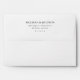 This wedding envelope features a minimalist design with a clean, white background and black text for a modern and elegant look. The layout is simple yet sophisticated, with centred typography in a crisp sans-serif font that emphasizes clarity and formality. Perfect for special occasions, the ample negative space around the text enhances its focus on the important details, making it ideal for weddings or formal invitations.