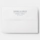 This wedding envelope features a minimalist design with a clean, white background and centered black text for a sophisticated look. The layout is simple yet elegant, emphasizing readability through ample negative space and crisp typography. A classic serif font adds a touch of refinement, making it perfect for formal occasions. Customizable placeholders allow you to personalize the names, address, city/state, and postal code, ensuring your special day is celebrated in style. Ideal for weddings, this envelope combines modern aesthetics with timeless charm.