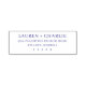 This elegant rubber stamp features a clean, minimalist design with centred text on a white background. The black serif font provides a classic and formal aesthetic, perfect for personalizing invitations or announcements. Its simple layout emphasizes readability and sophistication, making it ideal for marking special occasions like weddings or formal events. The customizable text allows you to add names and addresses effortlessly, ensuring each impression is tailored to your needs.