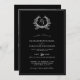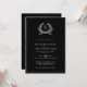 This is an elegant, formal, and classic botanical crest and monogram wedding invitation in ebony black. The back of the card has a place for your photo, and a QR code for your website's additional details.
