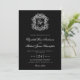 This elegant black and white monogram wedding invitation features an ornate crest with interlocked fancy script calligraphy for the initials of the bride and groom and the names, in classic black and white. Find matching products in the collection, or message me through Zazzle Chat for more products and design tweaks.