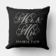 Elegant Black Mr and Mrs Script Custom Monogram Throw Pillow
