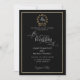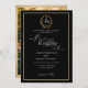 Elegant Black n Gold Wreath Monogram Photo Wedding Invitation