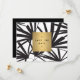 Coordinates with the Elegant Black Palm Fronds with Gold Name Notecard Template by 1201AM. Graphic black palm fronds set against a white background create an eye-catching and bold visual motif on this modern event Save the Date card. © 1201AM CREATIVE