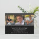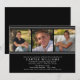 Celebrate your graduate with this graduation party invitation featuring a sleek black layout and a three-photo strip across the top. The clean stripe accents and modern typography create a classic, sophisticated look for a high school or college celebration. Personalize the name, school, date, time, address, and RSVP details to match your event.