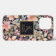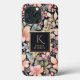 Elegant Black Pink Floral Watercolor Monogram Name Case-Mate iPhone Case