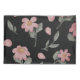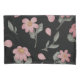 A pretty pink and green floral design with a black background colour. This design has flowers, leaves and petals as different elements.