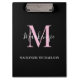 Elegant Black Pink Personalized Monogram Name Clipboard