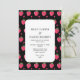 Celebrate love with this charming strawberry-themed wedding invitation. A playful strawberry pattern pops against a deep black background, framing a soft white panel with refined serif typography. The contrast creates a look that feels both romantic and modern, perfect for garden, summer, or whimsical weddings. Ideal for couples who love sweet details with elegant presentation, this design blends classic layout with a fun fruit-inspired aesthetic.