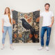 Elegant Black Raven William Morris Inspired Floral Fleece Blanket