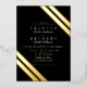 Elegant chic black real shiny gold foil and white modern stripes wedding invitation.