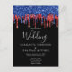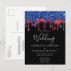 Elegant Black Red Blue Glitter Drips Wedding Announcement Postcard