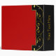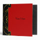 All purpose Avery three ring binder, done in red, with a black spine and black border, on the front and back. Graphics of pretty gold tone flourishes decorate the black border, on the front and back covers. Text in golden brown and black is ready to personalize to read what you want. Great for home, school, or office. Inserts and pages sold separately at your local discount, office supply, or craft shops.