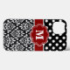 Elegant Black Red Dot Damask Monogram Case