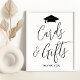 Modern graduation party sign featuring an illustration of a black graduation cap at the top with "Cards and Gifts" displayed in a black calligraphy script. Personalize the simple graduation poster with your custom text at the bottom (currently shown with "Thank You"). The graduation party sign is perfect for both high school and college graduates.