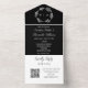 Elegant Black Script Modern Unique RSVP QR Code Al All In One Invitation