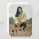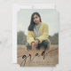 A modern graduation announcement featuring a handwritten script font overlay. Perfect for high school, college or university graduates. Just swap in your own photos and change the name, details and year. The back of the card provides space for a longer personal message. Other similar designs are available in my store.