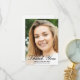 Send an elegant custom photo graduation thank you flat card to family and friends featuring a photo on the front with black script calligraphy overlay which reads "Thank You" with your name, school and year below to personalize. The back of the card has a thank you note and signature for you to personalize accented by a black graduation cap. Congrats on your graduation. Designed by artist Susan Coffey.