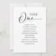 Modern and elegant design printed Black White Calligraphy Script Table Number 1 Seating Chart Cards that can be customized with your text and add each table number card to your cart, one by one. Please click the "Customize it" button and use our design tool to modify this template. Check out the Graphic Art Design store for other products that match this design!