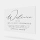 Simple and modern unplugged wedding sign featuring "Welcome" displayed in a modern black calligraphy script with a transparent acrylic background. Personalize the acrylic unplugged wedding sign by adding a custom message and your names. The black and white unplugged ceremony sign was designed to coordinate with our Modern Elegance wedding collection and is available in other colours.