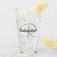 Enjoy this elegant drinking glass featuring your name over your monogram in modern script typography. Text templates are provided for your monogram (in silver grey) and name (in black).