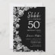 Elegant Black Silver Roses Surprise 50th Birthday Invitation