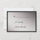This wedding response card matches the Elegant Black Silver Ribbon Wedding Invitations in our store. It has your custom text in black on a burnished silver background, which is framed in dramatic black. An elegant black swirl design is at the top. The back of the card has the same silver background, and is easy for your respondent to mark. Simple, classy and elegant!