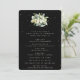 A black wedding program/order of ceremony, with a listing for a small wedding party and a thank you message on the back. Featuring an elegant bouquet/posy of hand painted snowberries and eucalyptus and a scattering of dots. All text is fully editable. Please view this Collection in my store for programs with alternative wording/layouts and in different sizes/colours/shapes. Coordinating items also available.