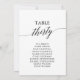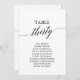 These elegant black table number 30 seating chart cards are perfect for a simple wedding. The neutral design features a minimalist card decorated with romantic and whimsical typography. The card prints on the front and back (double-sided).