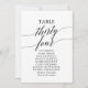 These elegant black table number 34 seating chart cards are perfect for a simple wedding. The neutral design features a minimalist card decorated with romantic and whimsical typography. The card prints on the front and back (double-sided).