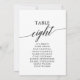 These elegant black table number 8 seating chart cards are perfect for a simple wedding. The neutral design features a minimalist card decorated with romantic and whimsical typography. The card prints on the front and back (double-sided).