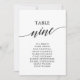 These elegant black table number 9 seating chart cards are perfect for a simple wedding. The neutral design features a minimalist card decorated with romantic and whimsical typography. The card prints on the front and back (double-sided).