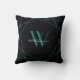 Elegant Black Teal Monogram Geometric Name Script Throw Pillow