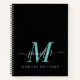 Elegant Black Teal Personalized Monogram Name Notebook