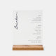 This acrylic sign features a clean, minimalist design with a white background and black text, creating an elegant and sophisticated look. The layout is organized into sections for beer, wine, and spirits, each listing various types in a clear, easy-to-read font. The stylish cursive signature at the top adds a personal touch, making it perfect for home bars or entertaining spaces. Its modern aesthetic and functional layout make it an ideal decorative piece for any occasion, enhancing the ambiance of your gathering spot.