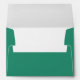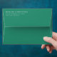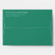 This wedding envelope features a minimalist design with a solid green background and crisp, centred typography. The layout is clean and elegant, utilizing ample negative space to highlight the text, which includes customizable names and addresses in a bold serif font. The modern style conveys sophistication and formality, making it perfect for weddings or formal events. Its simple yet refined aesthetic ensures readability while maintaining an uncluttered appearance, ideal for those who appreciate classic elegance.