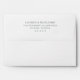 This wedding envelope features a minimalist design with a clean, white background and centered black text. The typography is elegant, using a serif font for the names and a sans-serif font for the address, creating a sophisticated look. The layout emphasizes simplicity and clarity, making it perfect for formal occasions like weddings. Its understated style conveys professionalism and refinement, ideal for those who appreciate modern aesthetics without excessive embellishments.