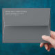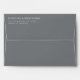 This wedding envelope features a sleek, minimalist design with a solid gray background and crisp white text. The layout is clean and balanced, with centered typography that exudes elegance and sophistication. The serif font adds a touch of formality, making it perfect for formal announcements or invitations. Its modern aesthetic ensures clarity and professionalism, ideal for couples looking to make a stylish statement on their special day.