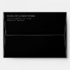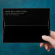 This wedding envelope features a minimalist design with a sleek black background and crisp white text, creating an elegant contrast. The layout is simple and clean, utilizing ample negative space to highlight the centred typography in a sophisticated serif font. Perfect for formal events, this design conveys a mood of simplicity and professionalism, making it ideal for weddings or other significant announcements. Customizable fields allow personalization, ensuring each envelope reflects the unique style of the occasion.