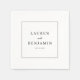 This wedding napkin design features a minimalist, centered layout with ample negative space, creating an elegant and sophisticated look. The color palette is simple, using black text on a white background for maximum contrast and readability. The typography utilizes bold serif fonts for the names, paired with a smaller italicized font for "and," enhancing the formal and timeless feel of the design. Perfect for couples seeking a classic and understated aesthetic, this design focuses entirely on typographic hierarchy without any decorative elements, making it ideal for formal announcements where clarity is key.