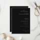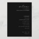 This elegant wedding program features a minimalist black background with crisp white text, creating a sophisticated and modern look. The layout is centred and vertical, with an inviting cursive "welcome" at the top, followed by clear, bold names and a detailed ceremony schedule in clean sans-serif fonts. Ample negative space enhances readability, while the monochromatic colour palette adds to its formal tone. Perfect for couples seeking a chic and uncluttered design that emphasizes clarity and elegance on their special day.